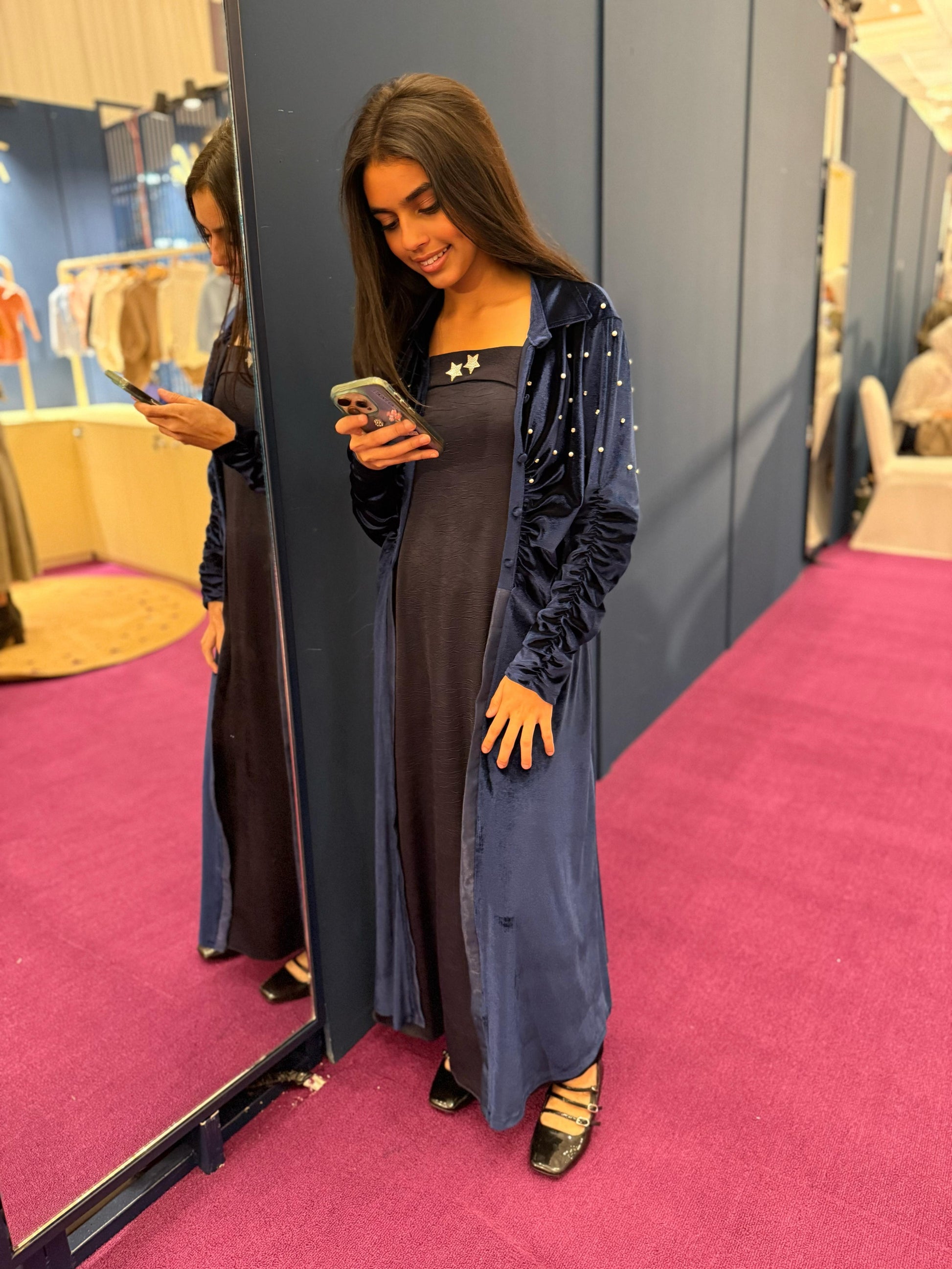 Two pieces set dress and jacket.. recommended to size up.. قطعتين فستان مع بشت .. الافضل اختيار قياس اكبر